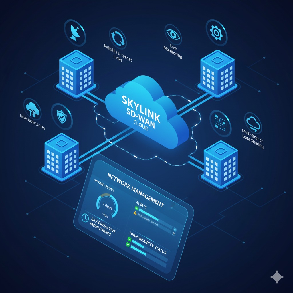 SD-WAN adds intelligence on top of your Managed Broadband. It automatically chooses the best path for each application, keeps important traffic flowing smoothly, and provides backup routes if a link goes down.