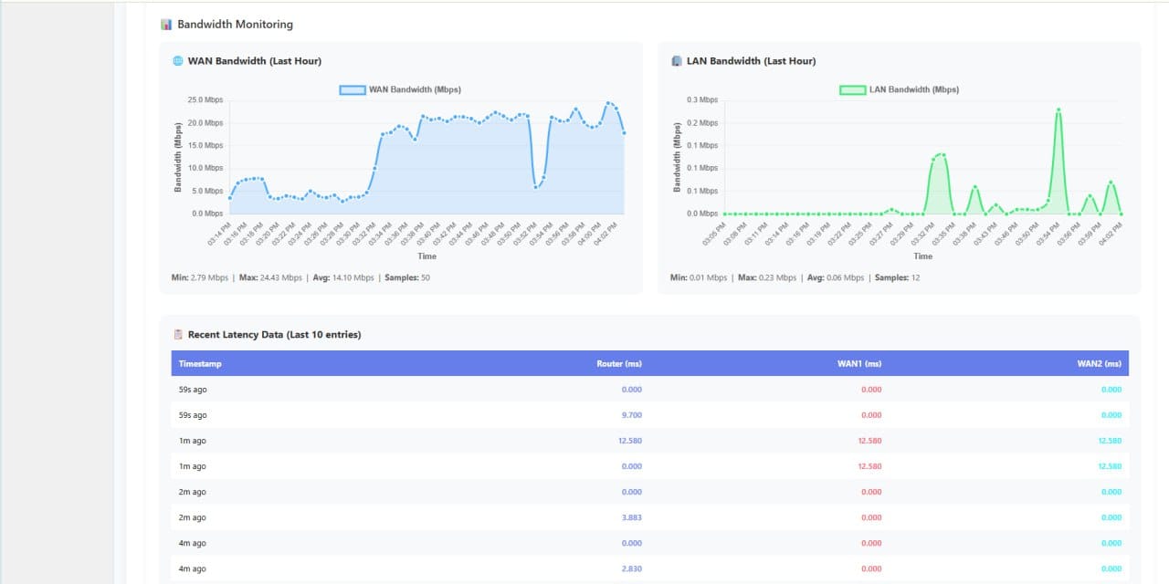 Real-time bandwidth monitoring gives you complete visibility into WAN and LAN usage, helping you identify congestion instantly. You can track how much bandwidth each branch is consuming and view recent latency data to spot performance issues early. This ensures smoother operations, faster applications, and proactive troubleshooting across your entire network